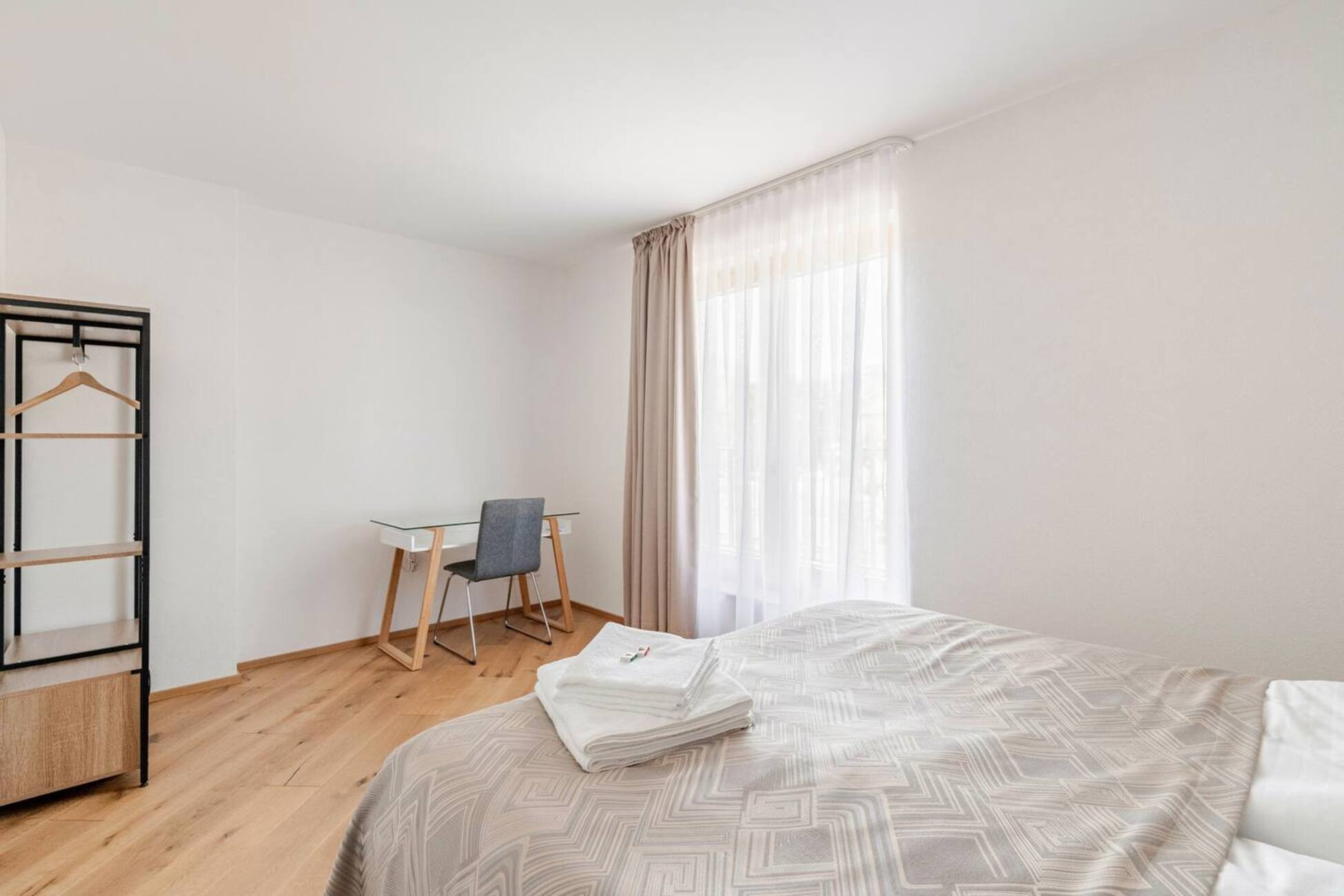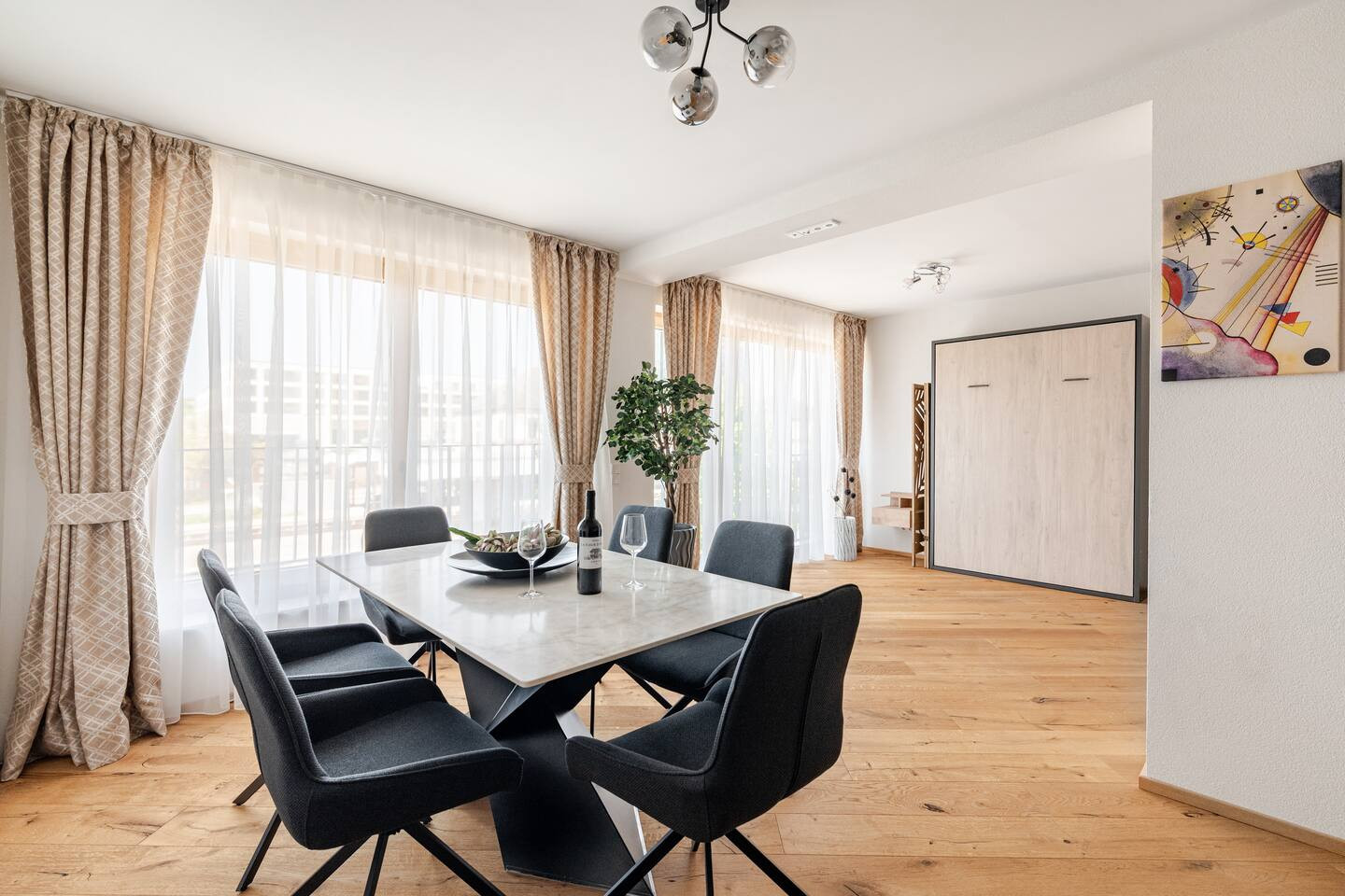 Located just a 1-minute walk from the train station and within walking distance to the city center, this spacious apartment is perfect for both short and long stays. It features three comfortable bedrooms with king-size beds, a fully equipped kitchen, and free parking. Family-friendly with all the amenities you need, including Wi-Fi, smart TV.